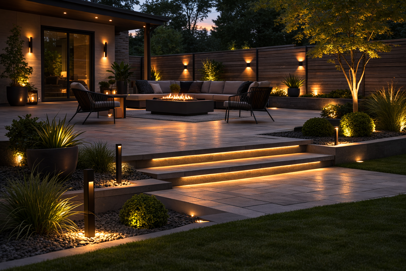 We install premium low-voltage LED systems, including pathway lights, step lights, uplights, strip lights, wall lights, and accent features.